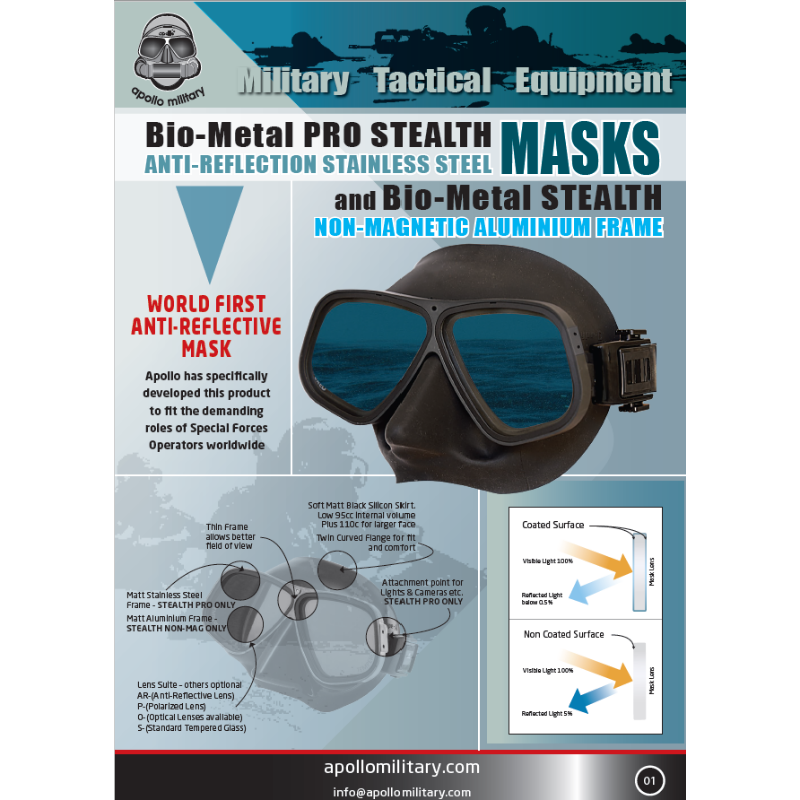 Apollo Bio Metal Dive Mask Stealth - Non Magnetic