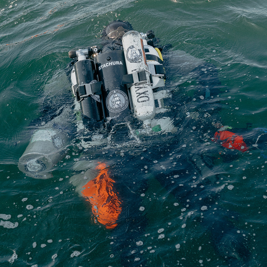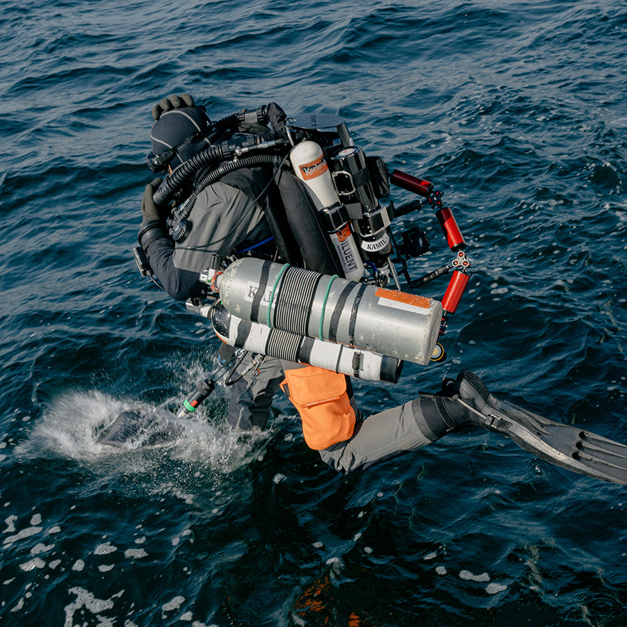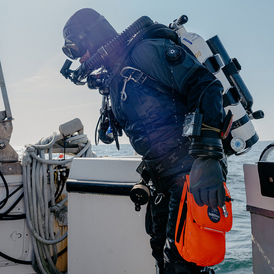 AIRON model pioneers with color, prints, orange suspenders, exceptional hi-vis orange pocket and turquoise accents. We made it for divers seeking innovation and superior design. Our philosophy remains centered around the benefits of diving in a modern, breathable membrane drysuit that provides exceptional comfort.