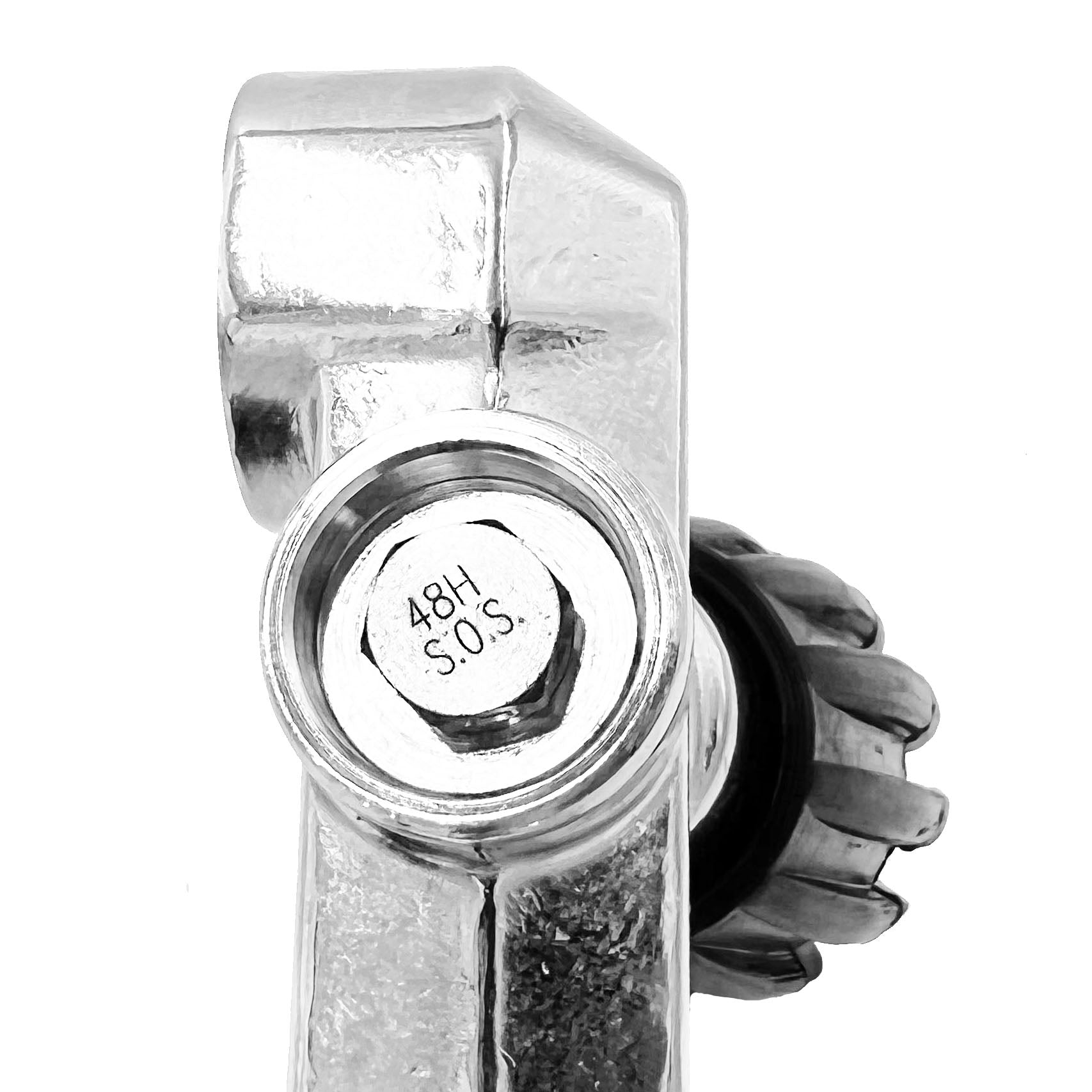 This sidemount valve has a longer extended hand wheel for easy diver turn on and off. The recessed burst disk gives added advantage against disk damage while in wrecks or caves. Comes with O-ring, dip tube and black tank hand-wheel.