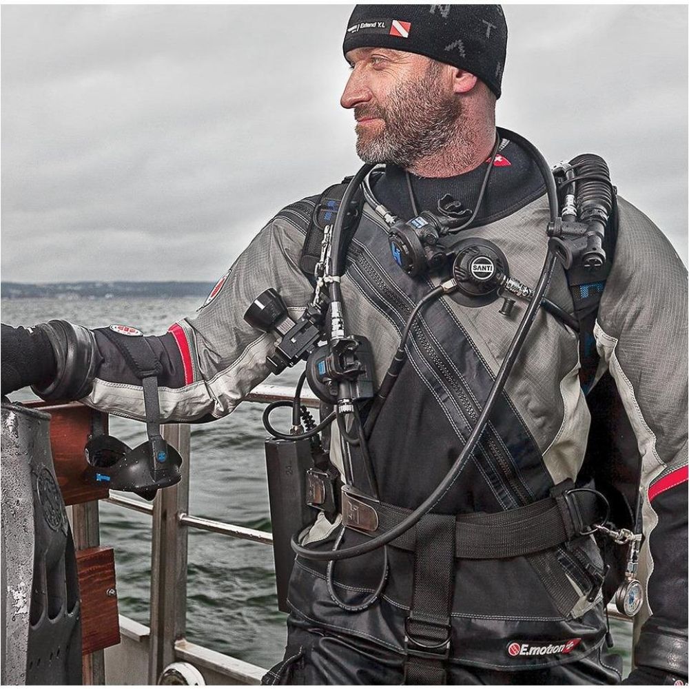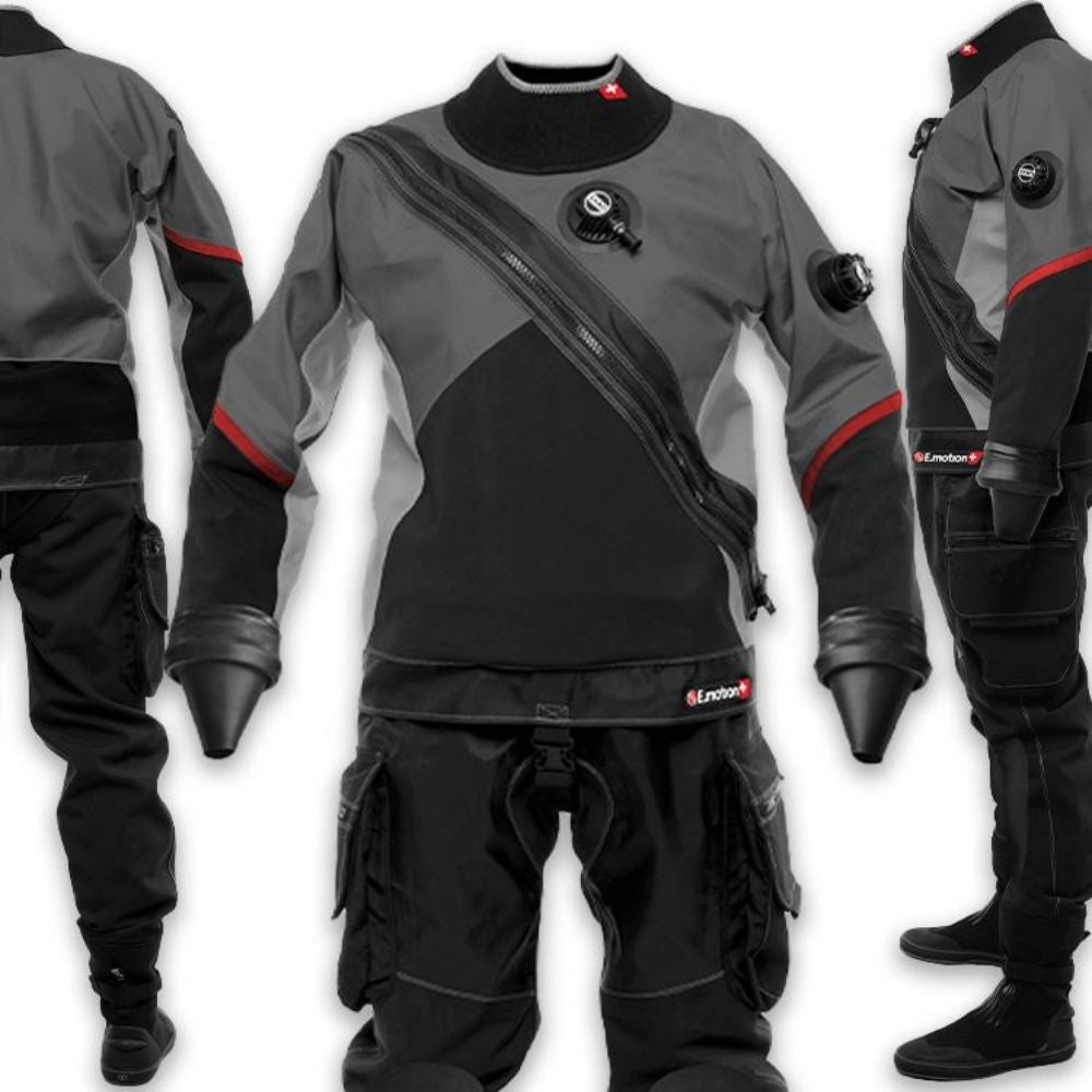 E.Motion+ drysuit comes as the optimal and ultimate combination of lightness and flexibility from E.Motion drysuit and E.Lite fabric exclusive durability. Both functionalities combined in modern and elegant cuts provide the highest comfort while diving.