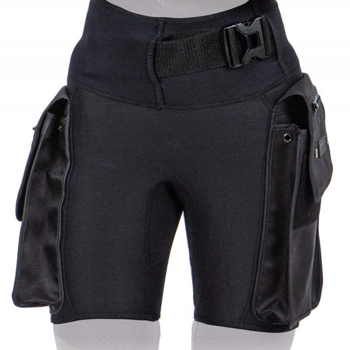 Worn over a wetsuit or a drysuit that doesn't have pockets these neoprene shorts will add valuable storage and worn alone over a swimsuit will add a bit of thermal protection too. A Pinch Clip Belt keeps your shorts in place and a section of neoprene at the back gives a bit of stretch so they're comfortable.