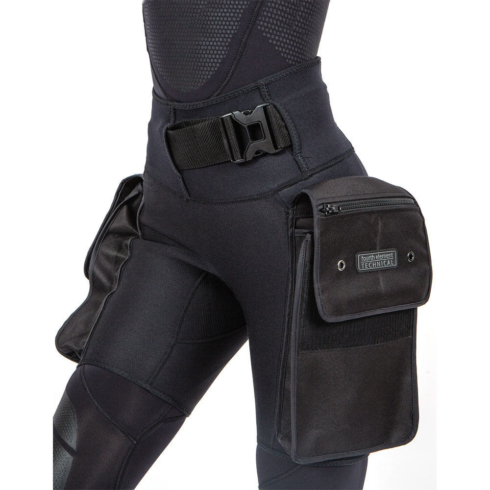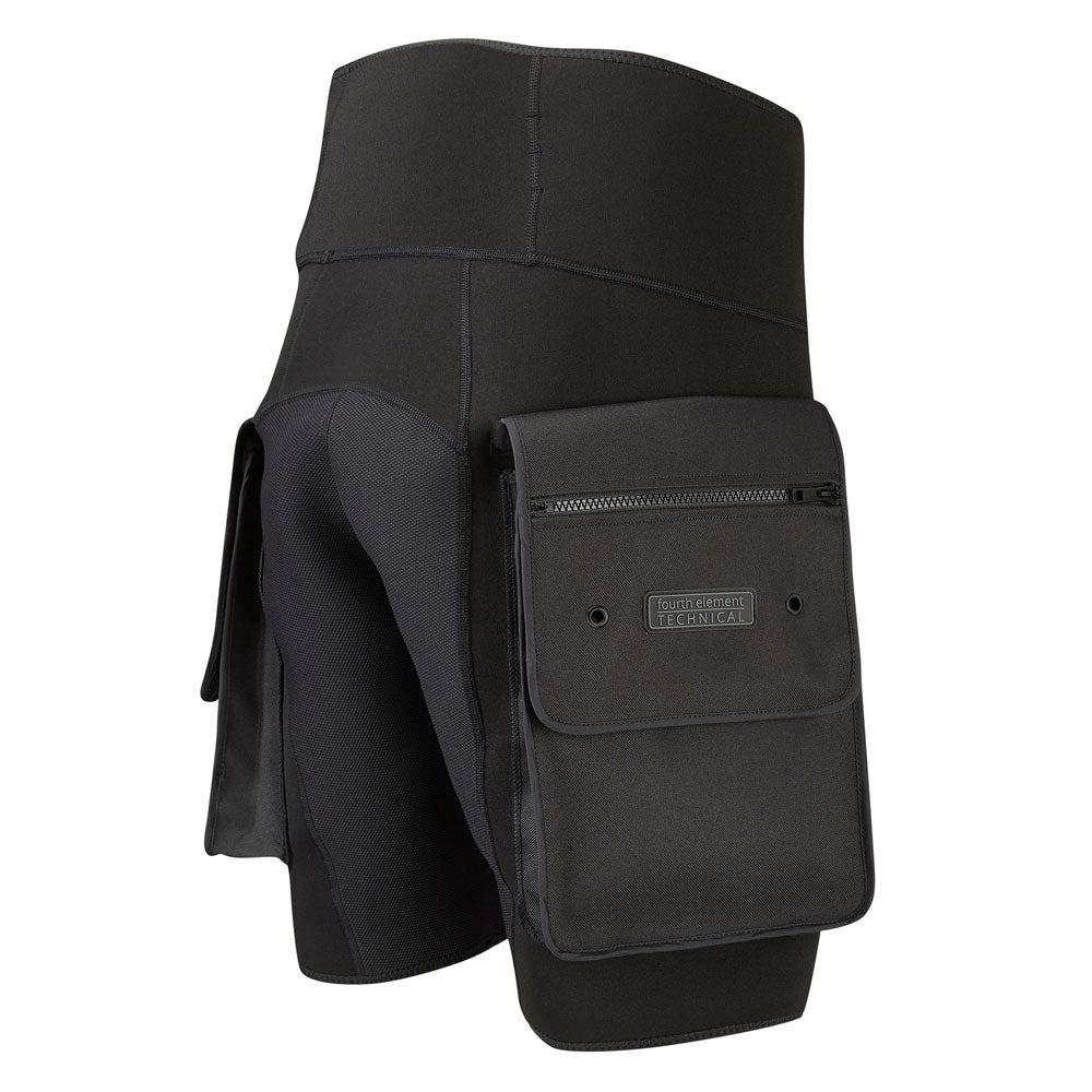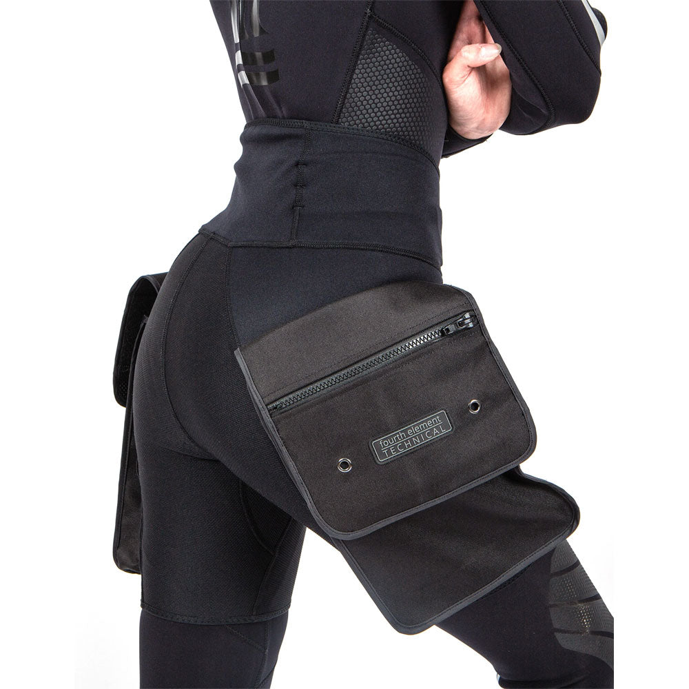 The Fourth Element Technical Shorts are a great way to add thigh pockets to your wetsuit or you can wear them alone with a rash vest. Additional storage while diving is essential to keep yourself streamlined and organize your stuff. A huge Velcro opening with zippered sections on the flap and anchor points inside makes the pockets very practical and easy to use.
