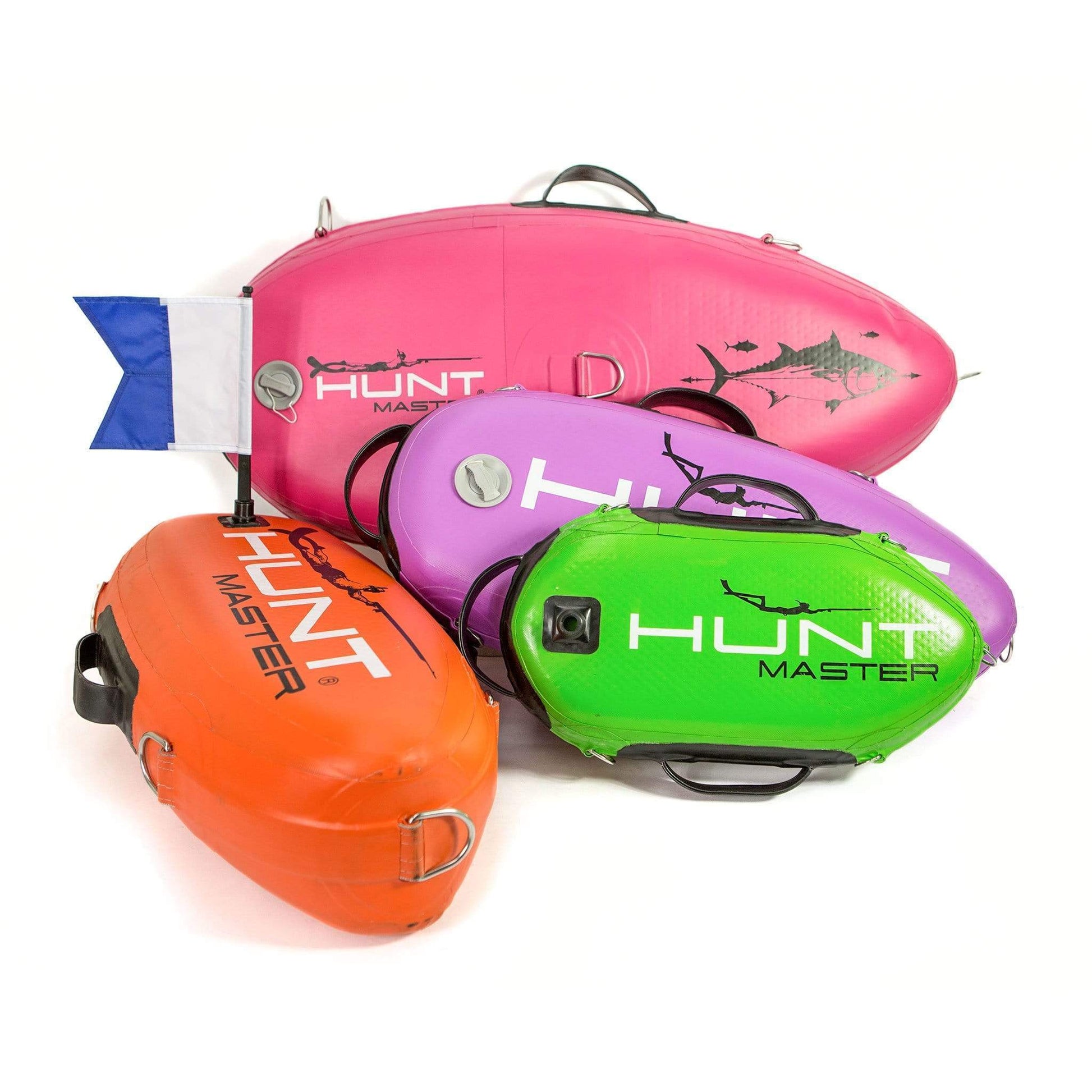 - Unlike other spearfishing floats, HUNTMASTER float designs are innovatively shaped. Our floats do not require additional lead weights to be added for the flag to remain upright.
