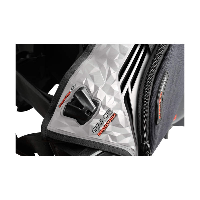 The Grace Ergotrim scuba diving BCD incorporates Airtrim 2.0 technology with an ergonomic configuration which includes a pneumatic inflation and deflation system.