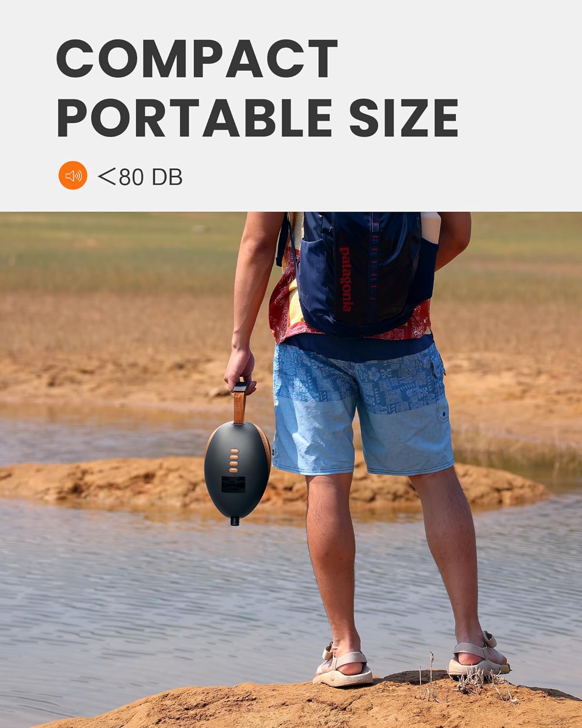 - PORTABLE, LIGHTWEIGHT BUT FASTER & LOWER NOISE- With about 0.9kg small size and carrying handle strap, the Dolphin sup electric pump is portable to handle or storage in your backpack, which is also faster than most smaller sup pumps in the market. Only with 80 db working sound, enjoy the lower-noise paddle board pump with no-shocking, faster, high pressure inflation.1