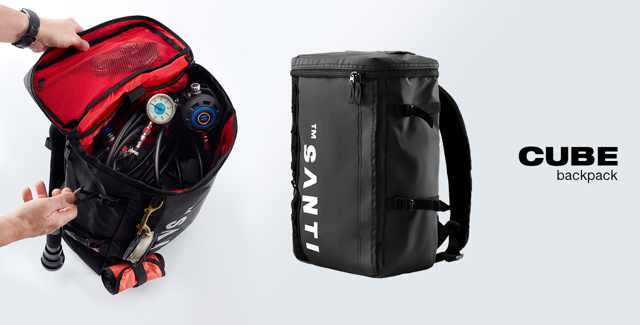The CUBE backpack is great for everyday use or during diving trips, city trips or out of town trips. It is designed to meet the needs of every user with its multitasking. Due to its waterproof PVC material, side clamp straps and MOLLE type handles a CUBE backpack works great on a dive trip and also in the city. Due to its unique shape, it easily accommodates both small office accessories and documents or laptop. Unique rectangular shape designed for easy packaging and transport, makes it also great as hand luggage.
