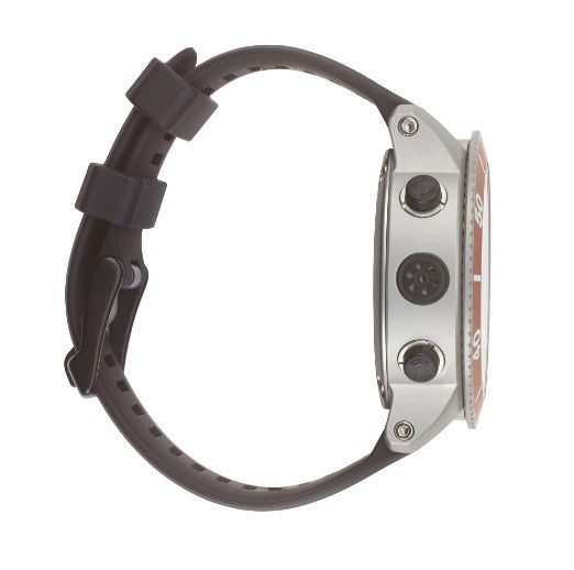 - Rechargeable lithium battery provides up to 30 hours per charge depending on dive and watch settings being utilized.