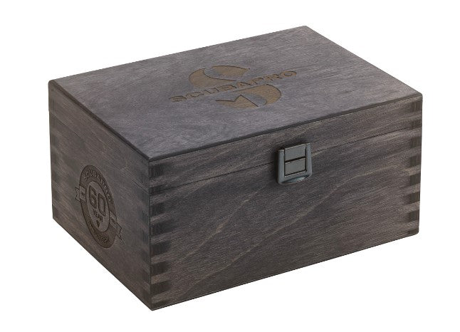 Celebrating 60 years as a leader in dive equipment quality and innovation, SCUBAPRO offers a limited edition, collector-grade Galileo G3 60th Anniversary dive computer with a distinctive red bezel and red screen accents. Each limited edition computer is packaged in a dark gray-washed FSC-certified wooden box engraved with both SCUBAPRO and the 60th Anniversary logos. A black anodized laser-engraved aluminum tag displaying the progressive serial number matching the computer is also included, highlighting the G3 60th Anniversary’s exclusivity for collectors.