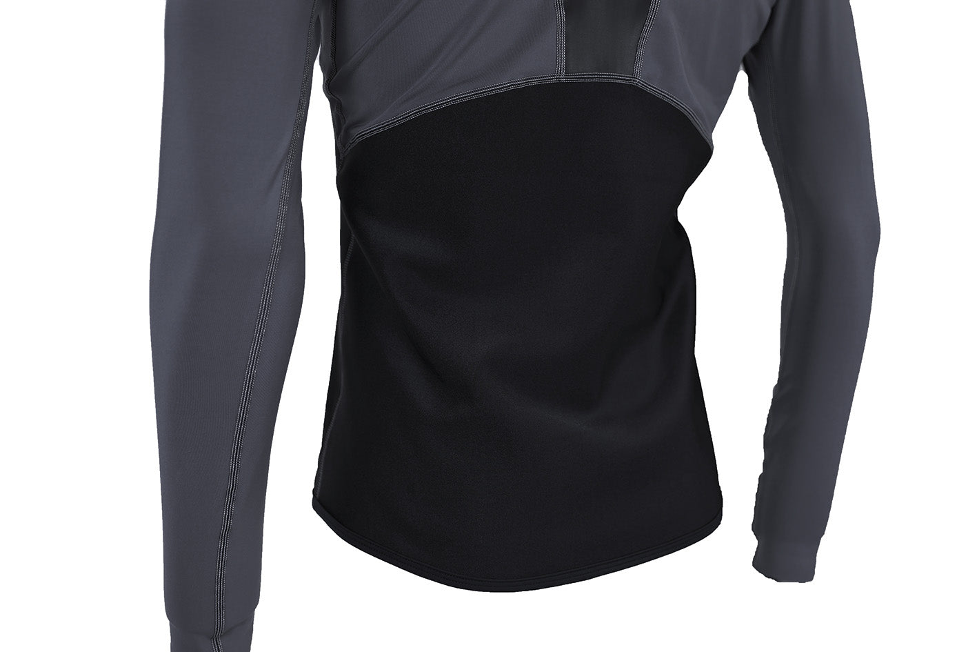 How does it achieve this? The entire front and lower back uses Chillproof 3-layer windchill proof fabric to keep your core and kidney area warm. The front also has a ½ zip for 100% warmth when you zip up, or allows you to unzip and vent when needed for body temperature regulation.