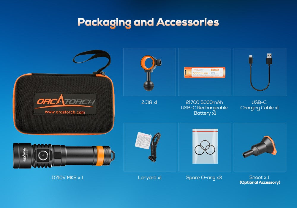 The OrcaTorch D710V MK2 is the upgraded version of one of OrcaTorch’s most popular underwater video lights — built for divers, underwater videographers, and photographers who demand exceptional brightness, flexibility, and reliability.