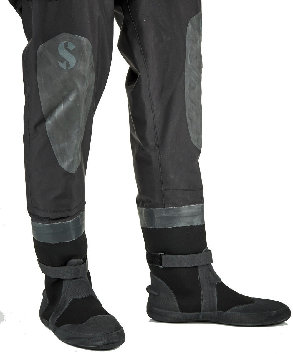 - 附加的半刚性靴子具有更薄的鞋底,可提高脚蹼的舒适度和效率,并采用橡胶加固以实现轻便的灵活性。它们包括尼龙搭扣带,以提高贴合度,同时防止空气流到脚部,以及鳍带固定器。