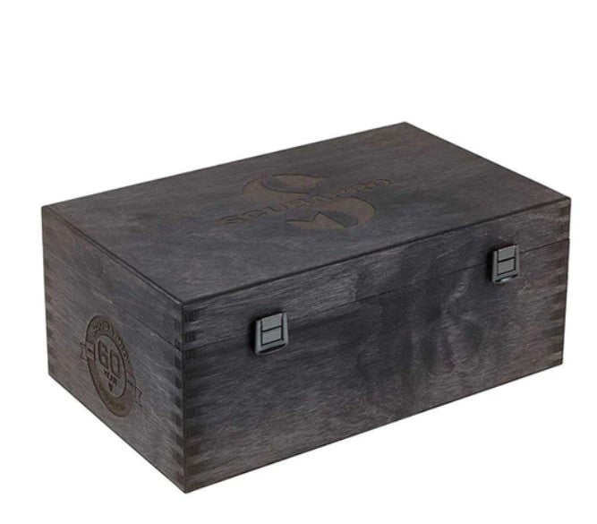 MK25 EVO/S620 钛碳 BT 60th 周年纪念版采用经过 FSC 认证的木盒,上面刻有“SCUBAPRO”和“60 Year Anniversary”标志。盒子的深灰色调突出了其木质纹理和徽标。随附黑色阳极氧化激光雕刻铝标签,其带有与调节器相匹配的渐进序列号,突出了这款限量版调节器对收藏家的独特性。