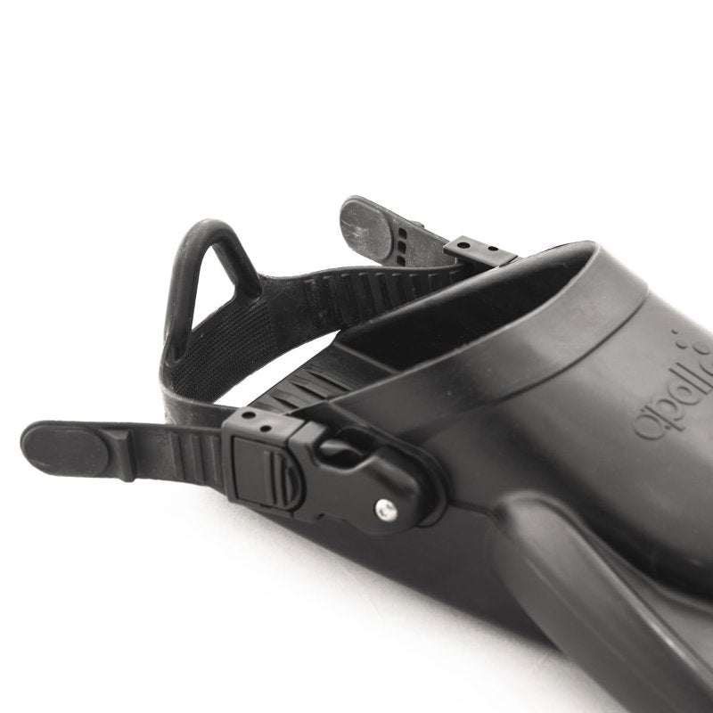 - The rubber strap provides a wider range of adjustability and adaptability to those size and shape variations as long as shoes and boots can fit into the fin boots pocket.