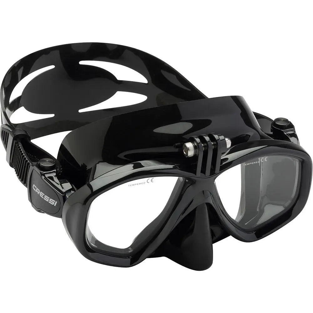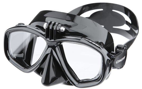 Cressi 动作面罩将超级方便的 GoPro 式安装座集成到面罩顶部,让您可以将任何小型动作型相机安装在其上。这种方便的设置使您可以拍摄非常酷的 POV 镜头,拍摄您在水下所做的任何事情。