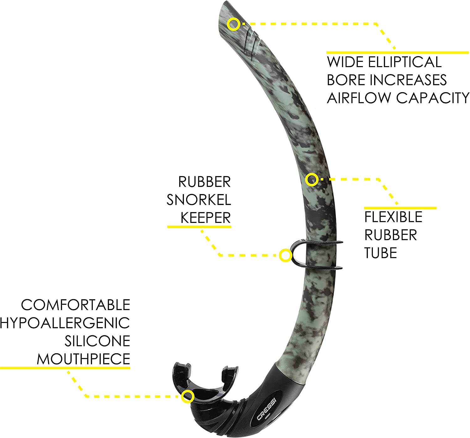 柔软的可弯曲大直径管使其能够非常舒适地正确定位在头部后面,同时保持在水面上轻松呼吸。