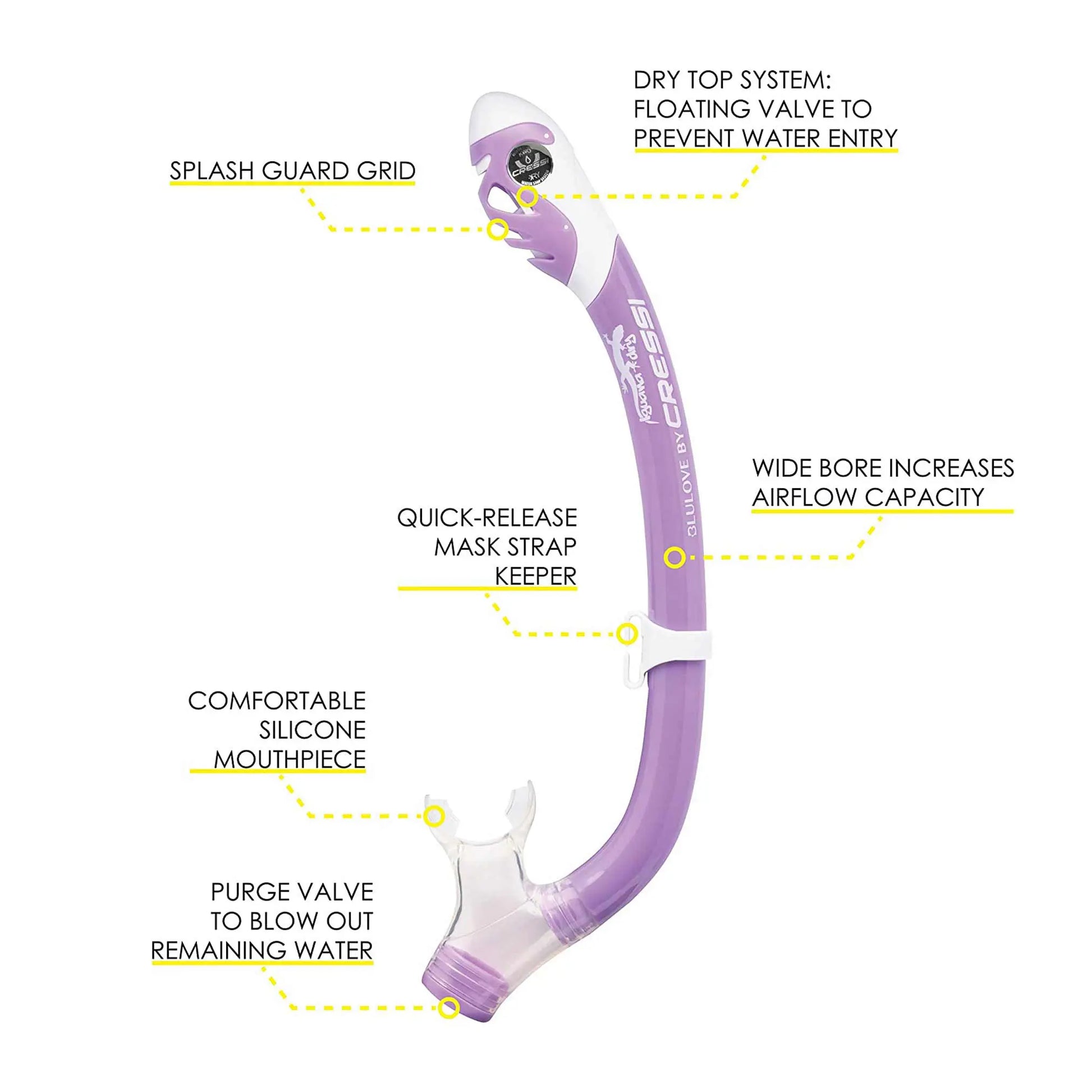 Cressi Pegaso + Iguana Dry Junior 紫丁香组合是一款 100% 多价面罩,非常适合浮潜。