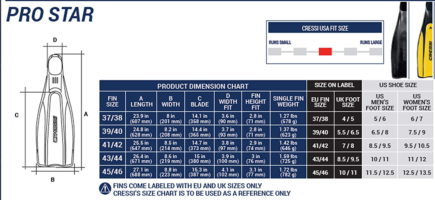 Cressi Pro Star 面罩/通气管/脚蹼套装非常适合任何想要更新潜水或浮潜装备的人,以及对于那些刚刚入门的人,以低廉的价格提供优质的 Cressi 产品。