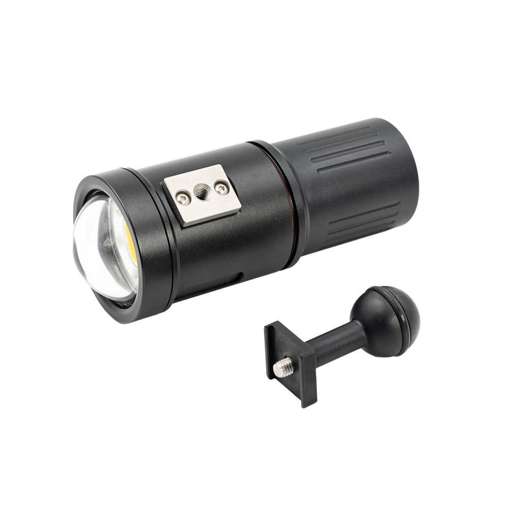 A compact yet powerful underwater video light designed to enhance your underwater photography and videography experience. The SL50 is the perfect companion for smartphone, compact cameras, GoPro devices, serving as an ideal focus light for bringing lost colours back to life. With a maximum output of 5,600 lumens, it brilliantly illuminates your underwater scenes, making it especially effective for night diving adventures. The SL50 features 9 levels of illumination, allowing you to customize the lighting intensity to suit various underwater conditions and creative needs. Equipped with a dual battery system, it provides up to 200 minutes of operation at 1,150 lumens, ensuring long-lasting performance for extended dives. With its robust construction, it is waterproof up to 100 meters, delivering reliability in deep-water exploration. The 120-degree illumination angle offers expansive light coverage, giving you the flexibility to experiment with different lighting angles and unleash your creativity like never before.