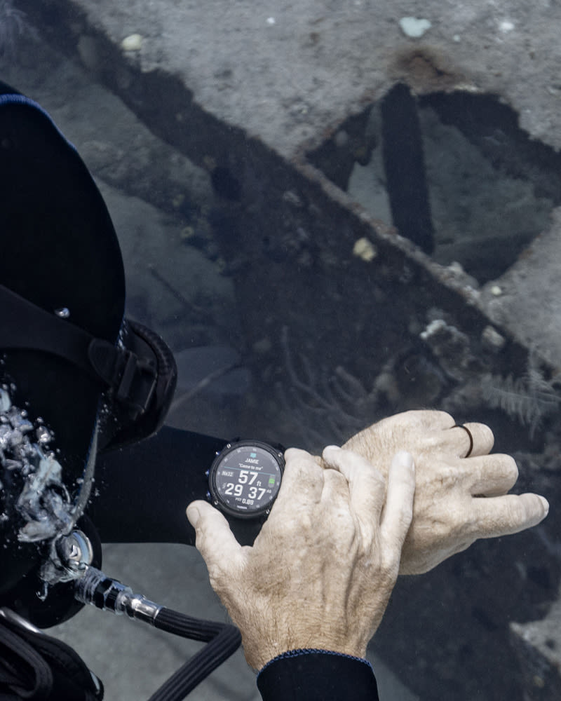 潜水过程中的每一次呼吸、每一次气瓶、每一位潜伴 — 当您将 Descent T2 收发器与兼容的空气集成 Descent™ 配对时,您可以在手腕上追踪所有这些信息潜水电脑。