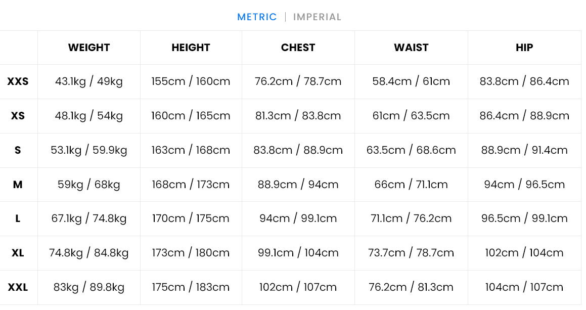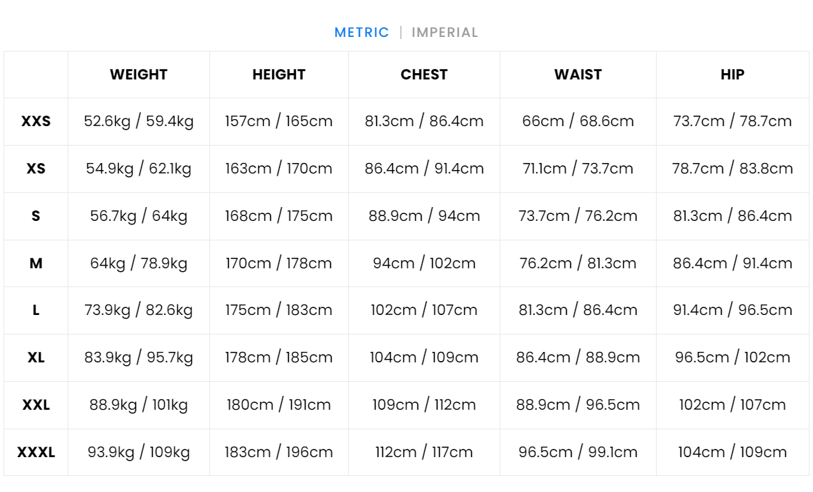 检查我们随附的潜水衣图表,看看哪种尺寸最适合