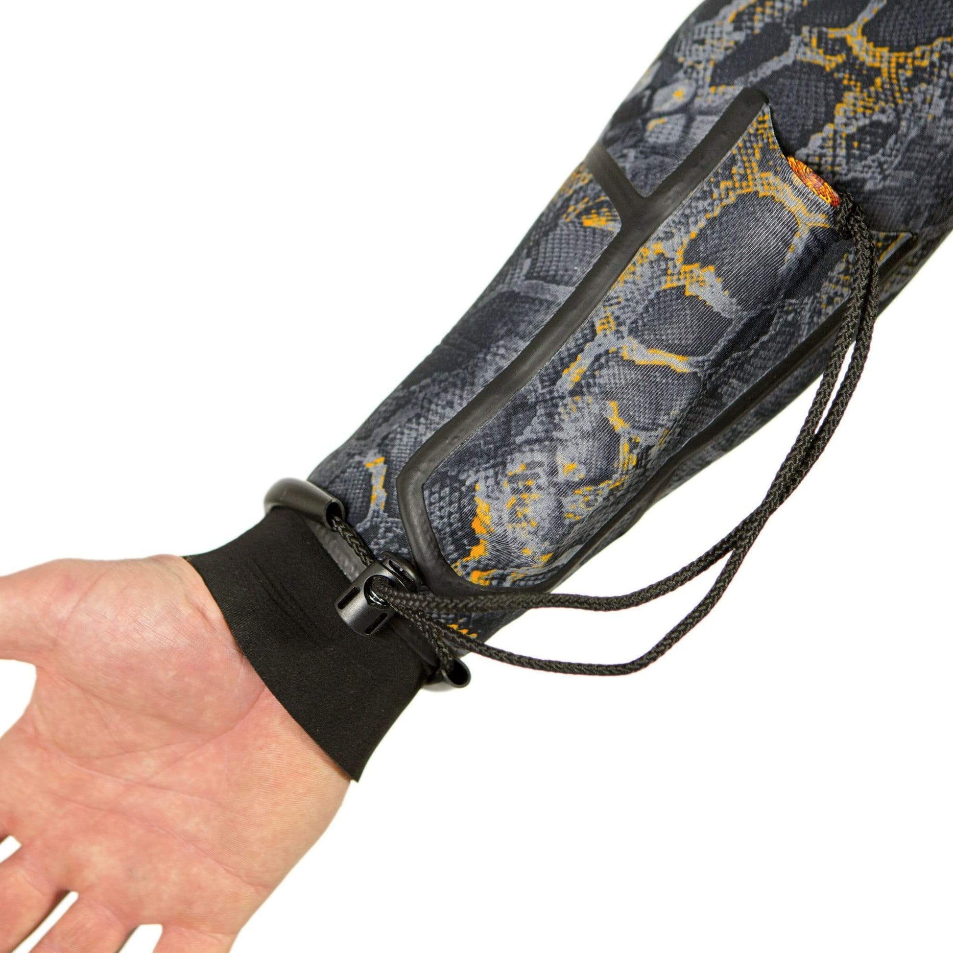 Halo 潜水手电筒的真正创新设计可存放在位于右袖上的方便手电筒袋中。这样您就可以在握住枪的同时轻松使用手电筒。