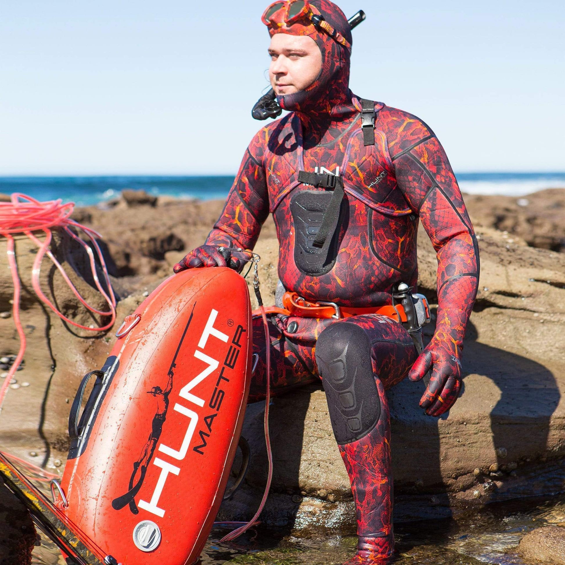 “Huntsman” 多层多色迷彩设计让您在陆地上脱颖而出,却又消失在水下。我们的各种迷彩颜色适合所有栖息地。火焰和银色代表岩石结构,蓝色代表开放水域的中上层物种,绿色代表草丛和杂草栖息地,红色和粉色代表珊瑚礁。红色在表面上明亮可见,在深处逐渐褪色为灰色和花岗岩的不显眼的混合色。