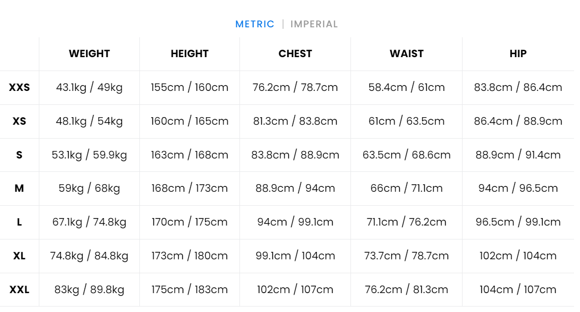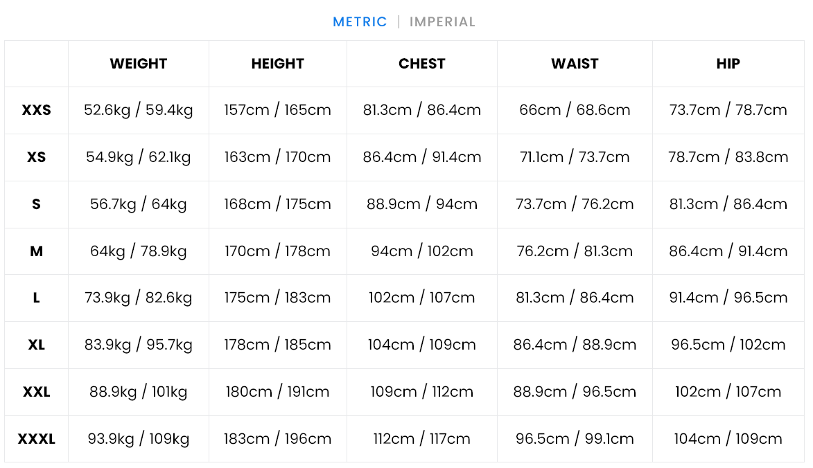 检查我们随附的潜水衣图表,看看哪种尺寸最适合