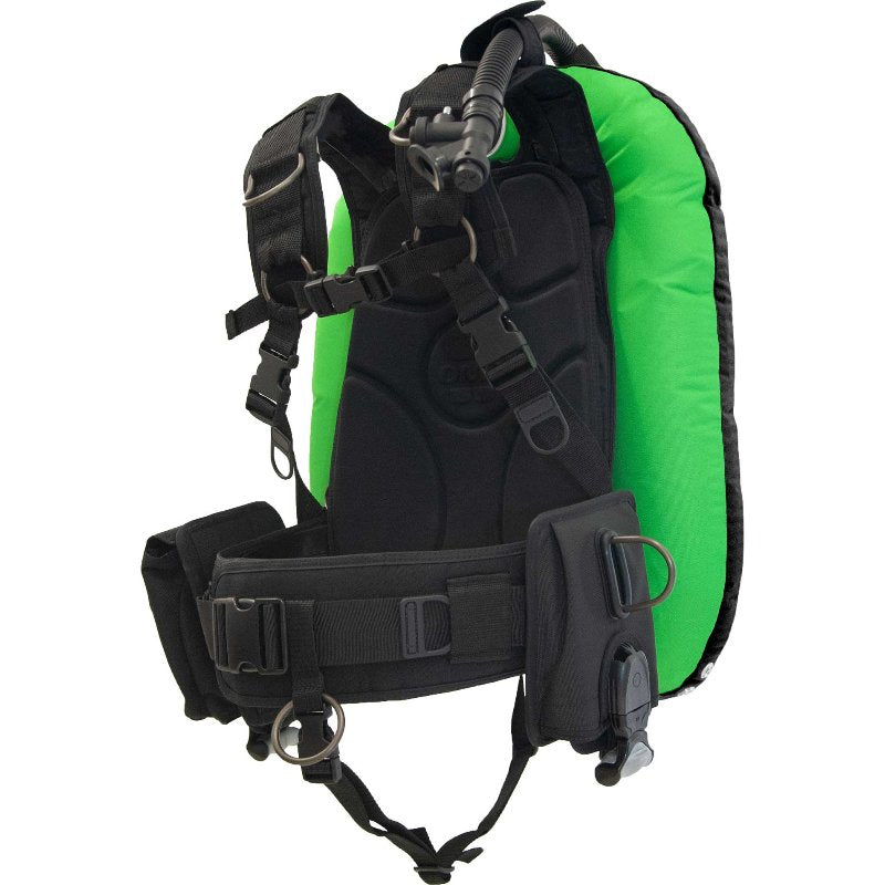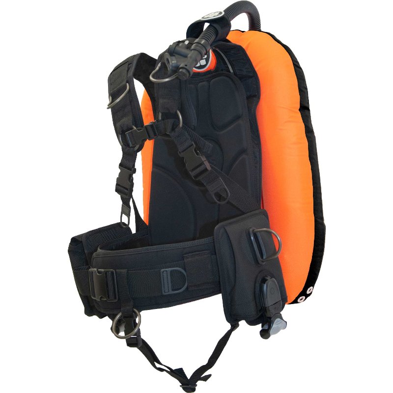 The OMS IQ Lite Cummerbund (CB) Signature System offers you one of the lightest yet strongest soft harnesses in the market. In the Single tank configuration it includes vertical weight pockets and 2 cam bands all you have to do is choose is your harness size and a Performance Mono Wing in regards of lift capacity and your personal color choice. Watch our video to see how easy you can convert the IQ Lite from single to double tank configuration by sliding in in back plate. Or simply use the slide in backplate as part of your weight system.