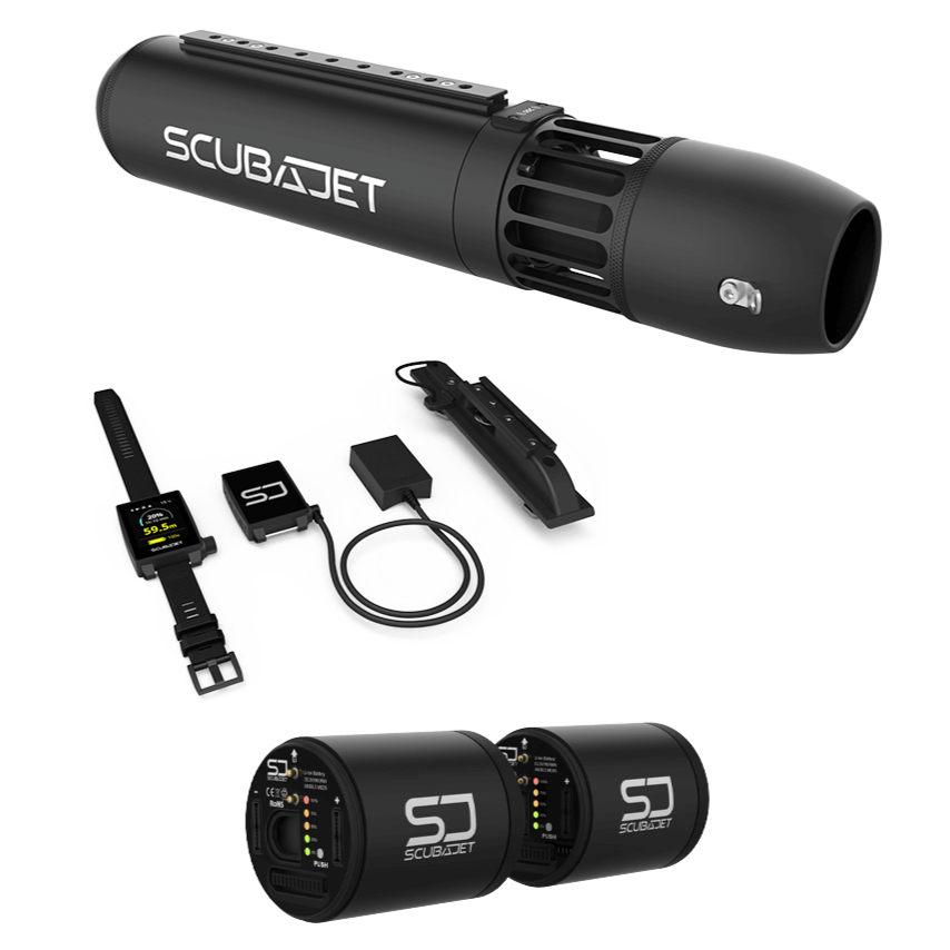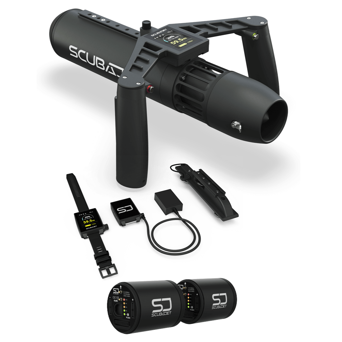 SCUBAJET 便携式系列是独一无二的。市场上没有其他电动设备的尺寸和重量如此紧凑、模块化且功能强大。巧妙的适配器可以立即将几乎所有潜水、浮潜、站立划桨或皮划艇水上运动装备转变为喷气动力设备。