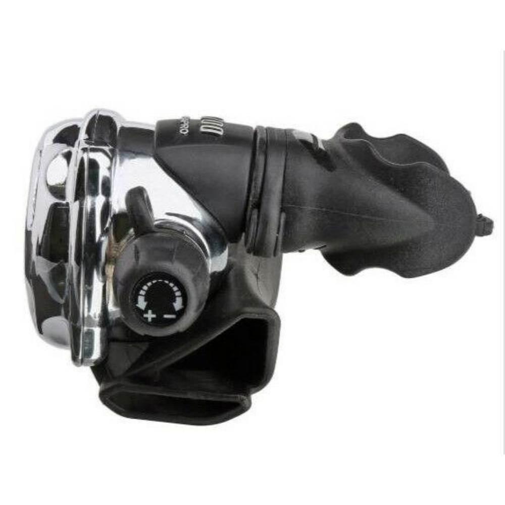 该调节器配备了潜水员可调节的吸入旋钮,用于微调呼吸阻力和潜水员可调节的文丘里启动真空辅助 (VIVA),以提供额外的吸入辅助和自由流动预防。