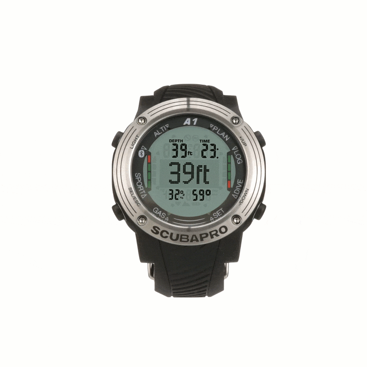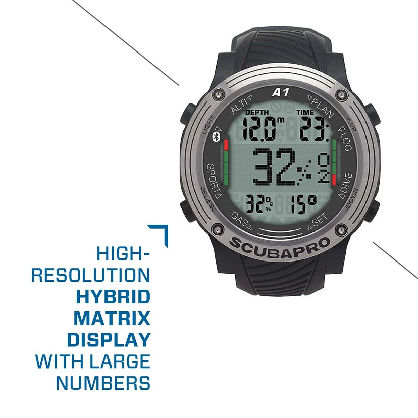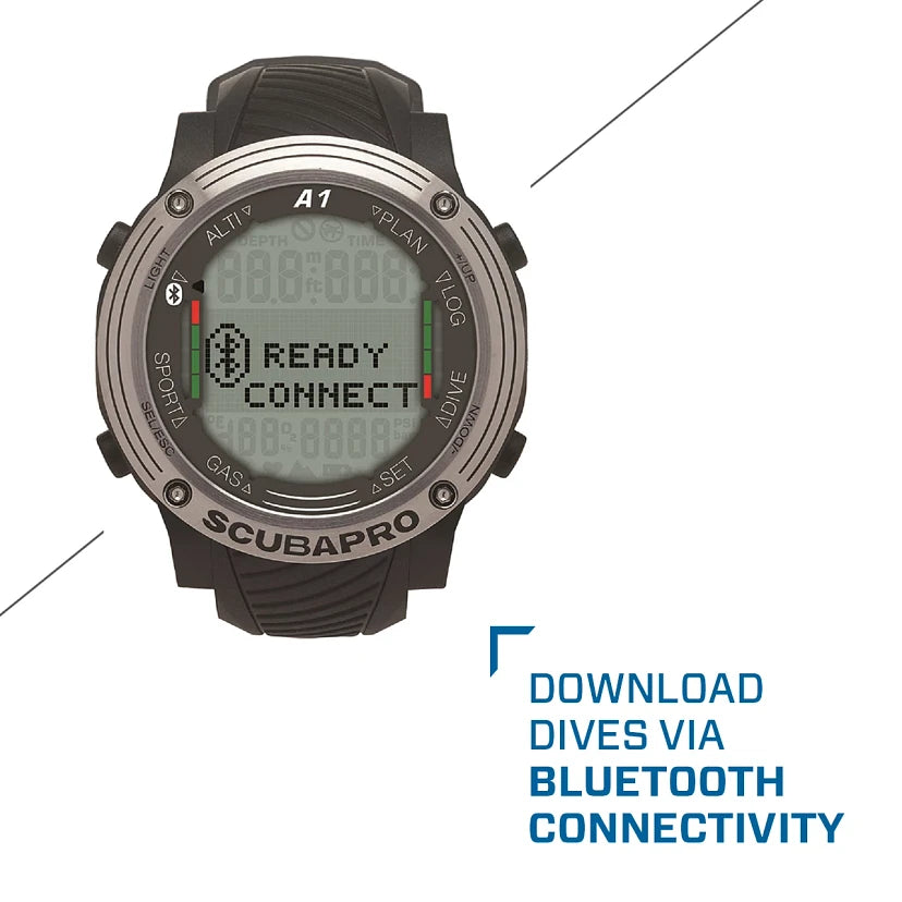 - 低功耗蓝牙接口可让您将潜水内容下载到任何 iOS 或 Android 设备或 PC/Mac。