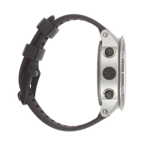 - 带有自发光数字和标记的不锈钢可旋转计时表圈可用于在仪表模式下设置和跟踪您的潜水时间。
