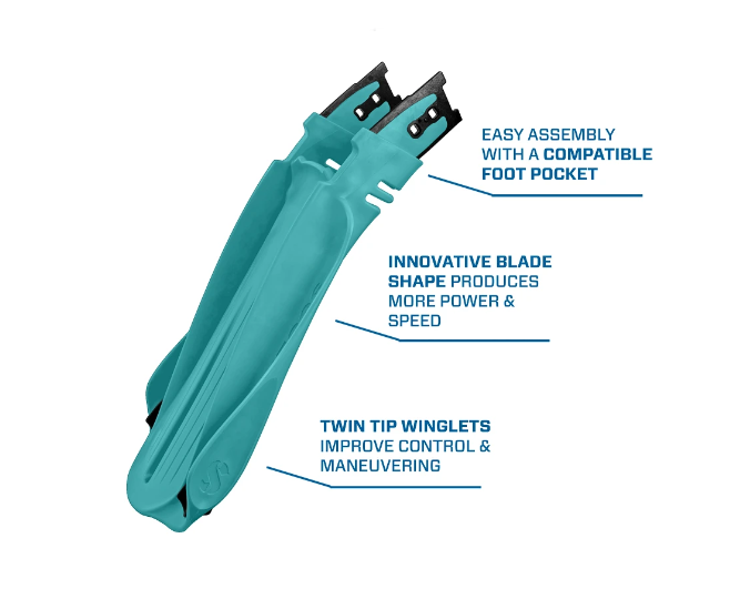 Made of premium Monprene for maximum durability, the Seawing Supernova’s innovative two piece design, with blade and foot pocket molded separately, makes transport easy. The Seawing Supernova Blade is the go-to blade for avid recreational and professional divers seeking maximum speed, power and control in all diving conditions. Foot pocket sold separately.
