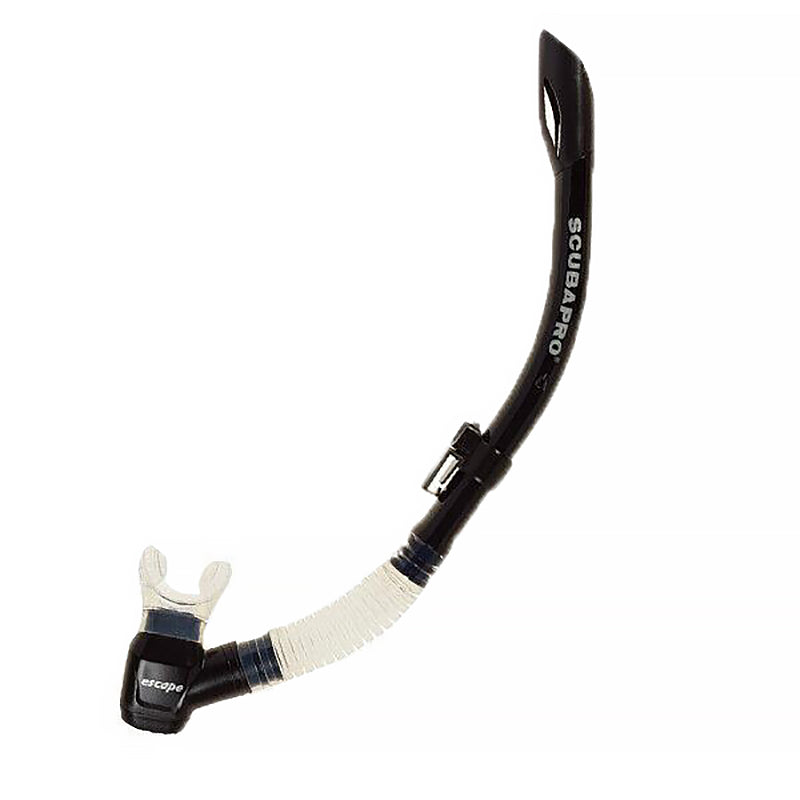 ESCAPE 半干式通气管 描述: 大口径管,方便呼吸 最低点的冲洗阀,轻松清理 手机式可拆卸夹子 半干式顶部设计有助于防止水进入管内。不使用时,柔性波纹部分会从通气管表面掉落。调节器式吹嘴增加舒适度。