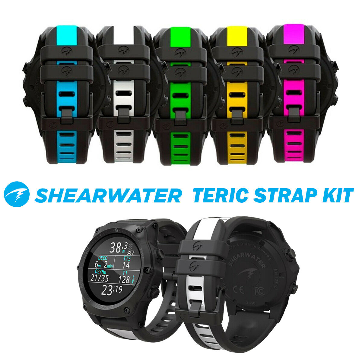 Shearwater Research Teric 双色表带套件是一款 22 毫米宽的可互换硅胶带替换件,适用于您的 Shearwater Teric 腕表潜水电脑。选择适合您个人风格的双色组合。切换很容易,而且始终安全。更换表带需要使用一把六角扳手卸下并更换将两件式表带固定在机身上的两个销钉。切换很容易,Shearwater 在 Teric 电脑机箱中包含了进行更改所需的一对六角扳手工具。