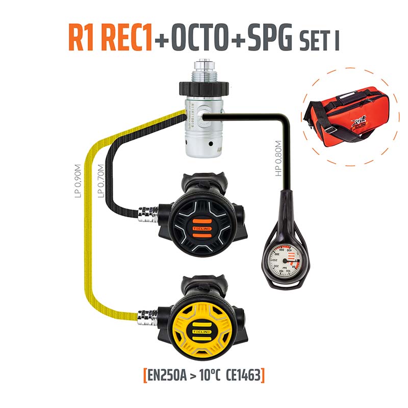 The Tecline R1 REC1 Regulator Set is designed for reliable and efficient performance, making it a perfect choice for recreational divers. This complete set ensures safety, comfort, and ease of breathing under various conditions.